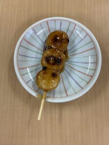 前田製菓で出来立てのみたらし団子を用意しました。
