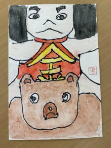 2種類ありますが、金太郎さんは1人しかしてません。ほとんどの方は花より団子の桜餅と3色団子です